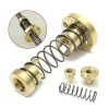 There are 2 delrin threaded sections with a brass sleeve. These threaded sections are placed under pressure (to reduce backlash) by a spring.