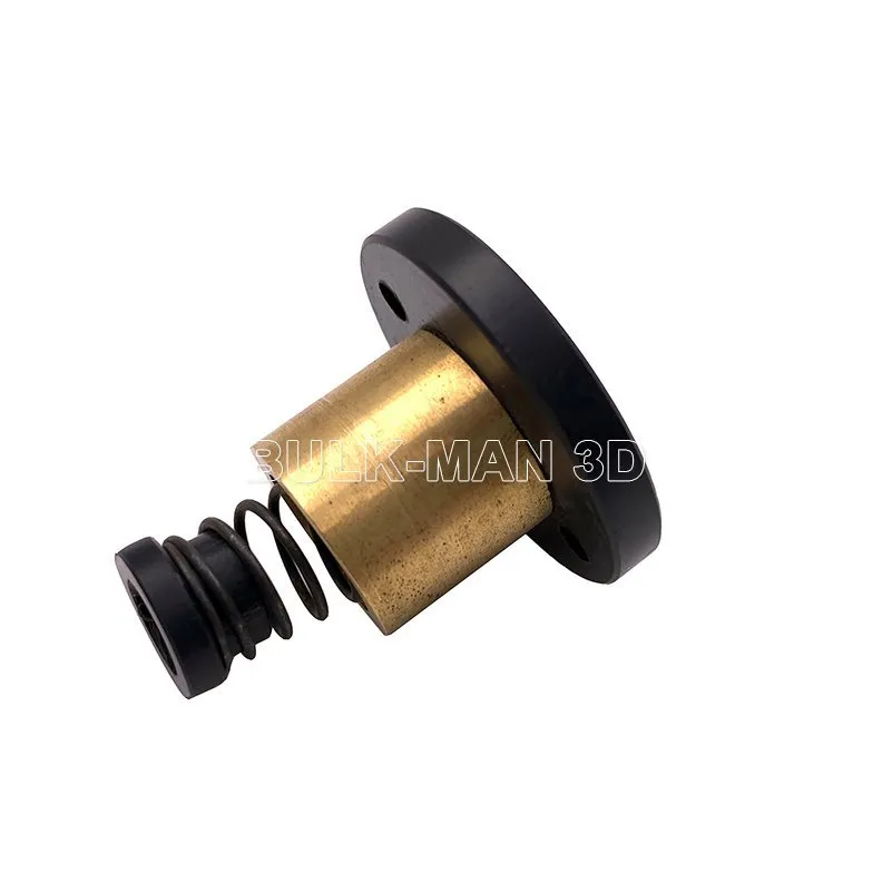 This Anti-Backlash Nut features a mounting flange with two untapped holes for M4 screws. It is intended for using with Tr8×2/Tr8×4/Tr8×8(P2) leadscrews, which are 8mm-diameter rods with four independent trapezoidal threads spaced 2mm apart. One full revolution of such a rod will result in a 8.0mm linear displacement of the travelling nut.