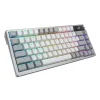 The ROG Azoth Extreme is a customizable 75% gaming keyboard with a premium aluminum-alloy chassis and metal frame. It features an 8000 Hz report rate with the ROG Polling Rate Booster and over 1600 hours of battery life in ROG SpeedNova 2.4 GHz wireless mode. The upgraded OLED touchscreen and three-way knob enable system monitoring and quick adjustments. The carbon-fiber positioning plate ensures a crisp typing sound, while three dampening layers absorb vibrations. An adjustable gasket mount with a paddle switch offers two typing preferences.