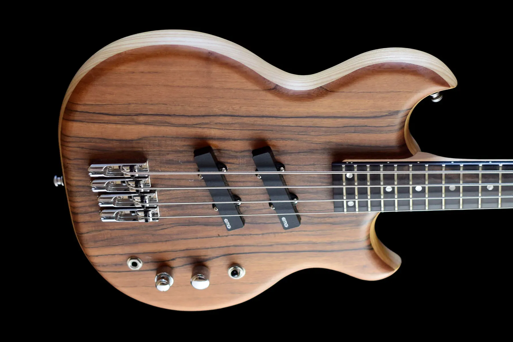 Now the SWB Pro takes this to the next level with boutique finishes and a number of significant upgrades. With a matched EMG Jazz Pickup pair and EMG Pre-Amp as standard, this bass features a 5 piece satin walnut and maple neck, wilkinson tuners and ebony fretboard.