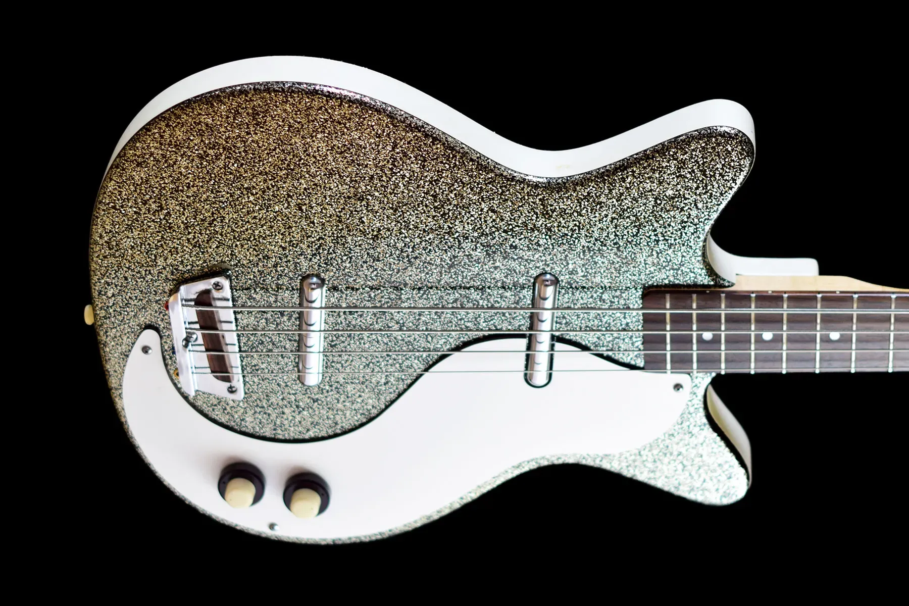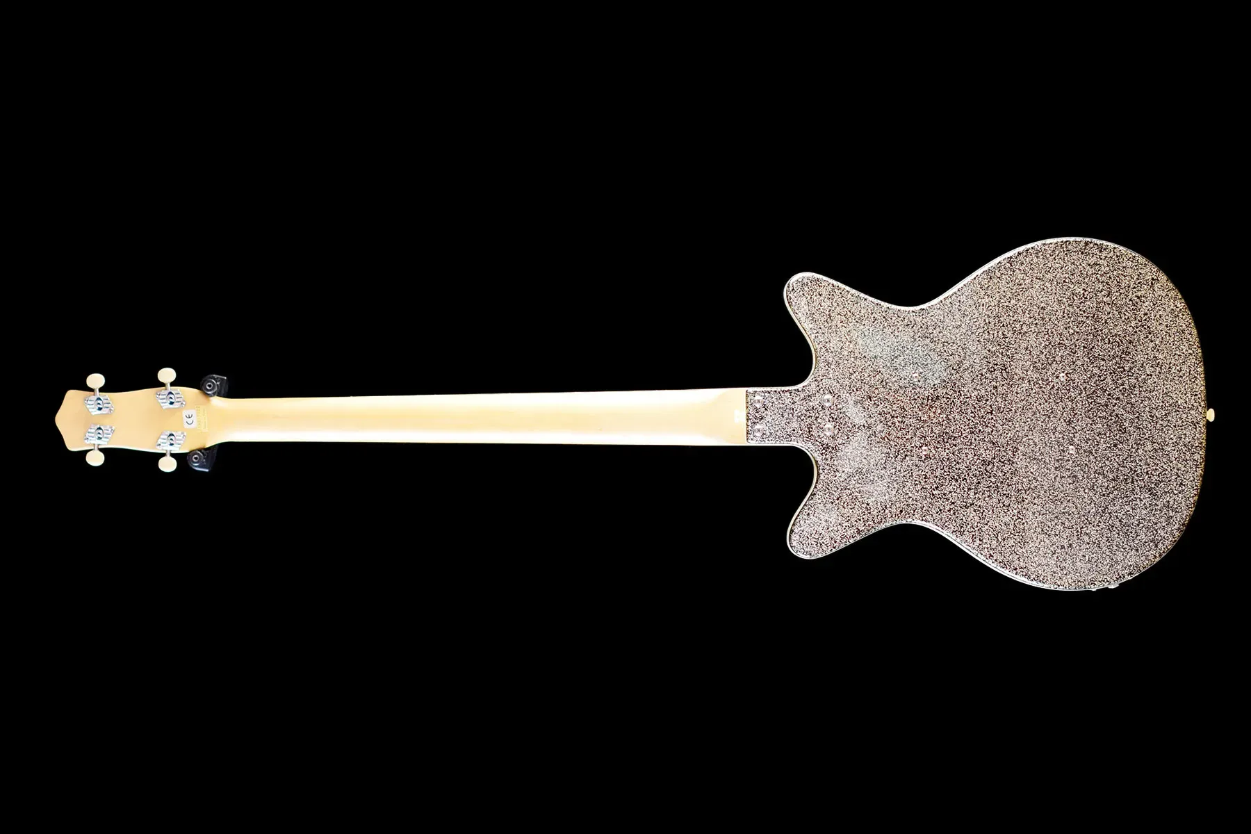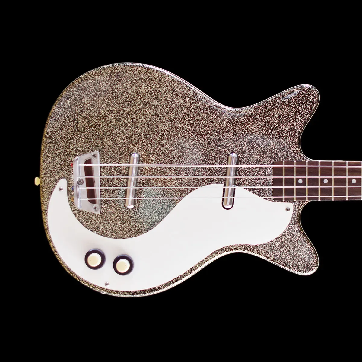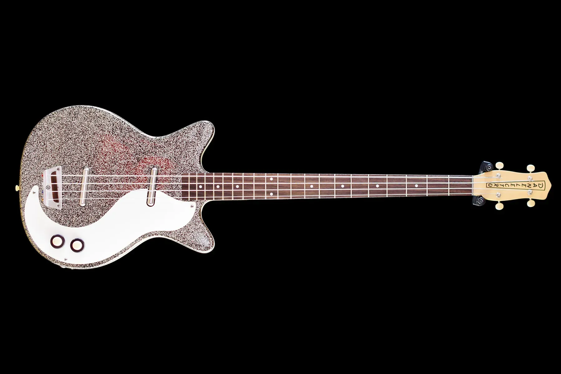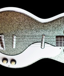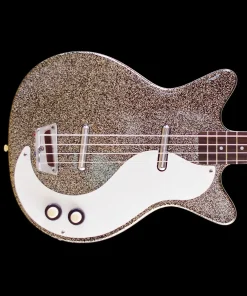 The Danelectro 59DC Long Scale in Silver Sparkle is a distinctive bass guitar that marries vintage aesthetics with unique tonal characteristics. Featuring the classic double-cutaway “shorthorn” body design, this model stands out with its shimmering silver sparkle finish. Constructed with a lightweight masonite body and a maple neck, it offers comfortable playability, especially with its 34-inch scale length. Equipped with dual lipstick pickups, the bass delivers a clear low end and a pronounced midrange, providing a sound that’s both retro and versatile. While some players appreciate its unique tone and lightweight design, others have noted that the build quality reflects its budget-friendly origins, with components like tuners and bridges being areas of critique. Nonetheless, for those seeking a bass with character and a nod to vintage flair, the 59DC Long Scale presents an intriguing option.