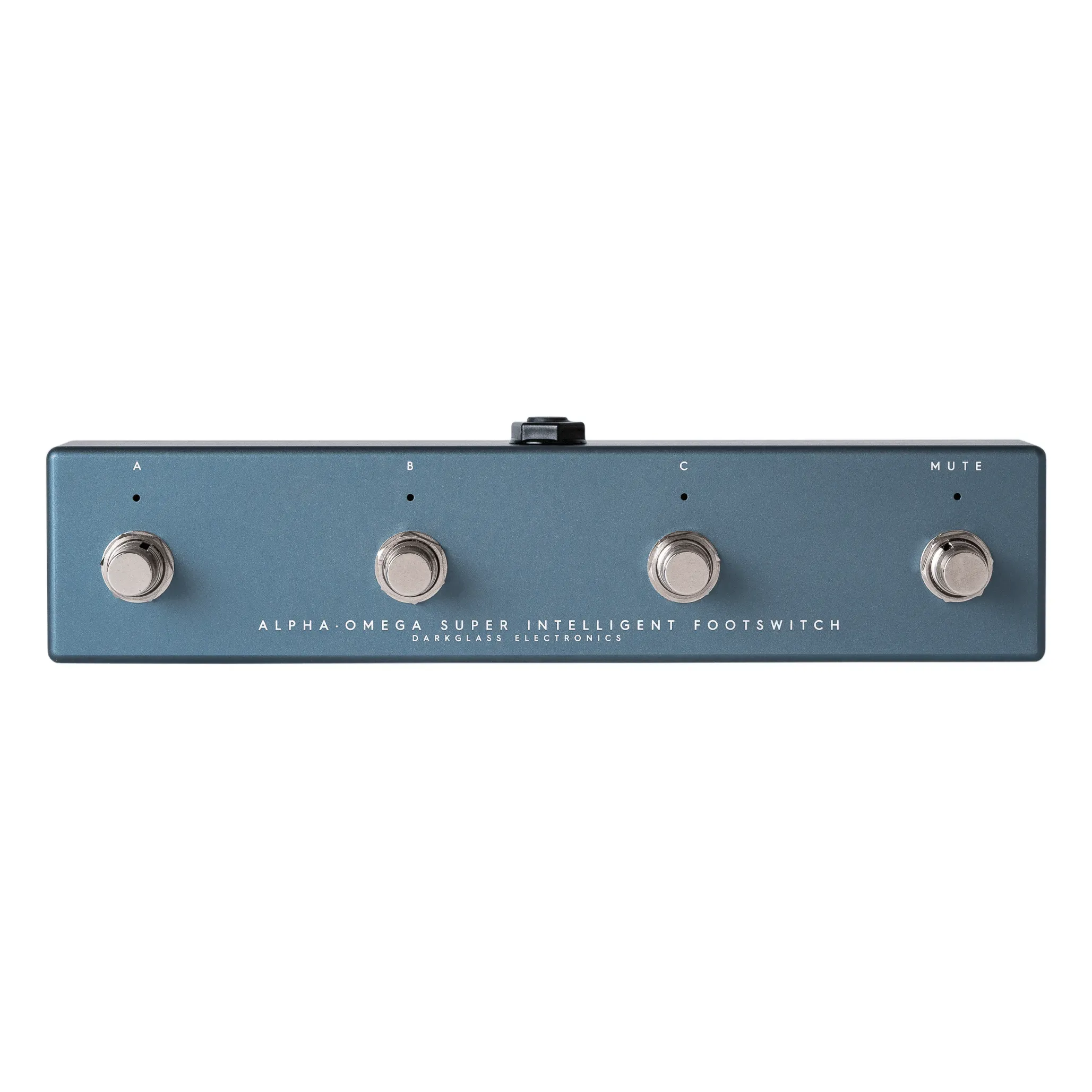 Alpha·Omega Super Intelligent Footswitch has three programmable footswitches for assigning channels (Clean, Alpha, Omega, Mod) and compressor state (On or Off). It also has a separate mute footswitch. The channel footswitch functions are programmed through Darkglass Suite, and settings are stored on the Alpha·Omega 900 amplifier.