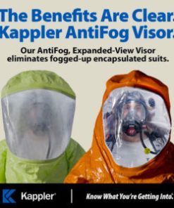 Kappler’s AntiFog Expanded-View Visor is standard on all gas-tight suits including NFPA-certified styles.