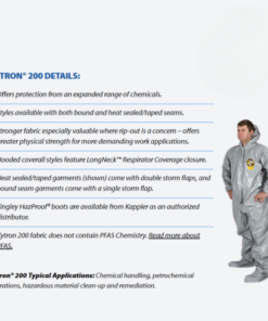 The Kappler Hazmat Suit Z5H553 is ideal for Hazmat Response, Chemical Handling, Refueling Operations, Petrochemical Refinery Operations, Hazardous Material Clean-up and Remediation, CWA Incineration, Remediation and Disposal.