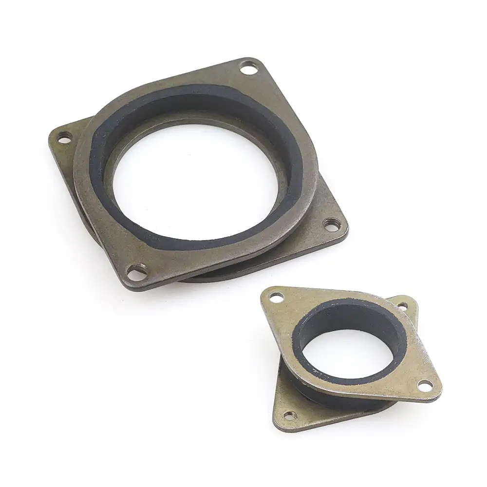 - This little bracket is made of two metal alloy plates with a high shore rubber joining them together. It reduces vibrations from the stepper motor and corrects the issue of parts loosening over time. The damper has two sides : non-threaded holes for Stepper Motor mounting, and threaded mounting holes for the application side.