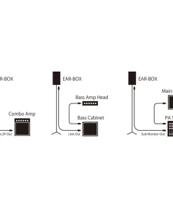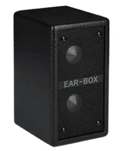 The EAR Box produces a near field sound that, when positioned close to you, will give you far greater clarity because it greatly increases the ratio of direct sound to the undesirable acoustics of the venue. It does not produce the full spectrum of a bass; it blends it in with the low frequencies of your cabinet.