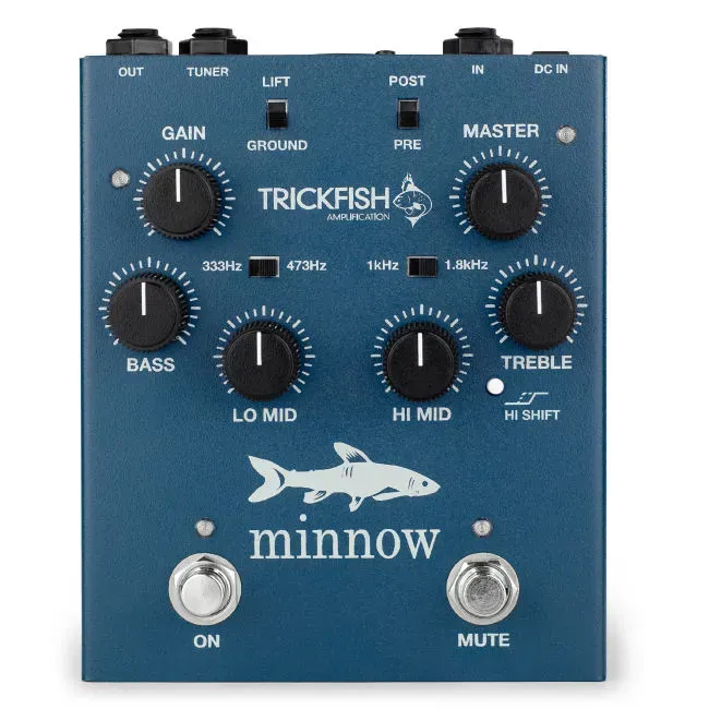The Minnow is a high quality, low noise bass preamp DI pedal equipped with our Bullhead EQ section. This single channel Bullhead preamp features shelving EQ’s for the BASS and TREBLE controls and variable band pass EQ’s for the LO MID and HI MID. A selectable mid frequency for both LO MID and HI MID controls provide complete control over the midrange. We’ve also added HI SHIFT to the treble frequency to further tune the cut/boost capability of the treble control. In addition, the Minnow preamp includes a tuner out for silent tuning and a balanced XLR output for use as a DI, great for both live and studio use.