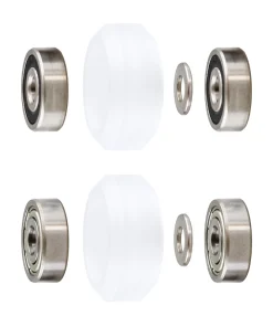 - The precision shims are placed in-between the two bearings. To assemble, first push one bearing into the wheel and then push the precision shims and 2nd bearing into the other side of the wheel.