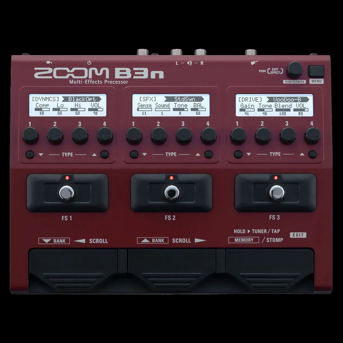 The B3n’s simple layout and controls make for faster and more intuitive editing. Its three independent LCD screens display your entire effects chain at a glance, and its tactile knobs